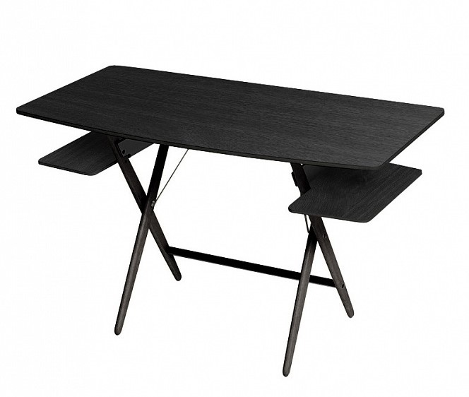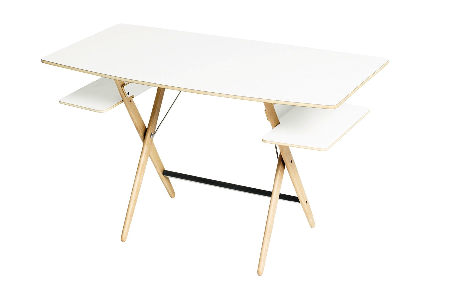 Scritarello, een verlangen om te schrijven, tekenen of gewoon te denken. Een klein bureau, bijna een neologisme, voor een lichte bezigheid met pen en papier. Een eenvoudig werkblad met twee planken aan de zijkanten. De poten in beuk zijn dun; de bladen laminaat hebben de rand in berkenmultiplex. Perfect voor in de slaapkamer, voor een studeer- of leeshoek.