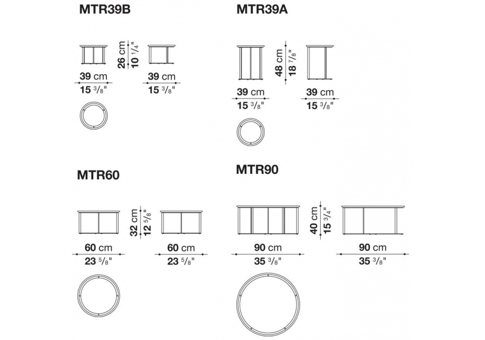 Mera ontworpen door Antonio Citterio voor B&B Italia is een lage tafels collectie met blad in Carrara wit marmer "venatino statuarietto" (natuurlijke afwerking) of Sahara noir marmer (glanzende polyester afwerking). Frame in gebronsd nikkel gelakte, tin gelakte, glanzend verchroomde of zwart verchroomde stalen profielen.