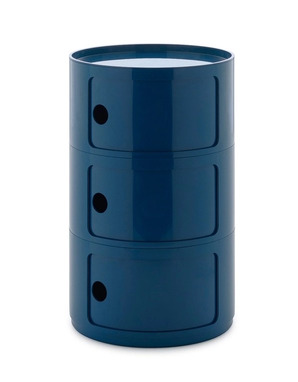 De 42 cm ronde versie van Anna Castelli Ferrieri’s I Componibili is nu verkrijgbaar in een geheel nieuwe look dankzij een nieuwe industriële print die zowel de kwaliteit als het uiterlijk verbetert. Er zijn ook meer kleuren om uit te kiezen, met de toevoeging van nuances die al beschikbaar waren voor de 32 cm maat, aangevuld met originele nieuwe tinten die hedendaagse smaak combineren met elegante verwijzingen naar het verleden. Verkrijgbaar in configuraties van 2 of 3 ondeelbare elementen, is deze versie van I Componibili de nieuwste technische evolutie van een klassieker uit de Kartell-catalogus. Verkrijgbaar in Bordeaux, Duifgrijs, Oranje, Petroleum, Groen en Wit.