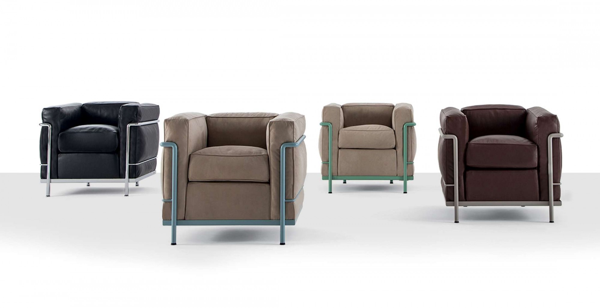 Het frame in chroom kan tevens in een reeks kleuren specifiek ontworpen door Le Corbusier.