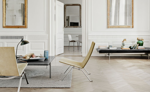 De elegante lounge fauteuil PK22 belichaamt het werk van Poul Kjaerholm in zijn zoektocht naar de ideale vorm gelinkt aan industriële vormgeving, een vaste waarde in zijn werken.