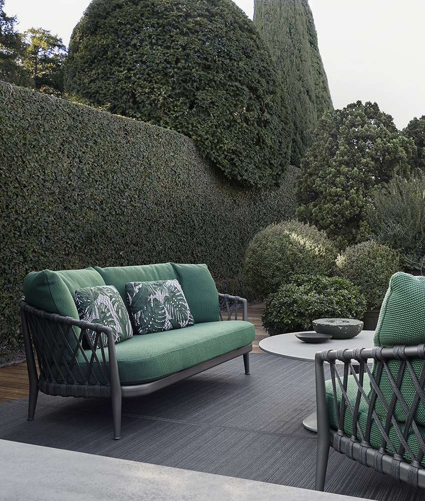De Erica outdoor sofa kan op 2 dieptes en 2 breedtes . Deze is gemaakt van een technologische mix van geëxtrudeerd en gegoten aluminium in verschillende kleuren, aansluitend met het polypropylene koord. Een ruime keuze in prachtige outdoor stoffen.