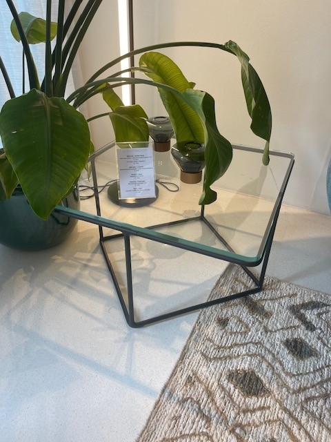 Bijzettafel extra licht glas/ zwart gelakt onderstel