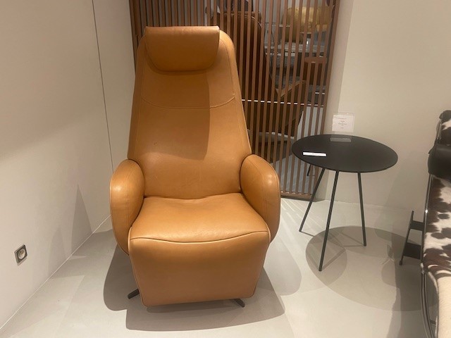 Relaxzetel Lotila Caffé Latte ; cognac kleurig aniline leder zoals foto 1 Mono move verstelbaar, medium afmeting Zwarte voet.